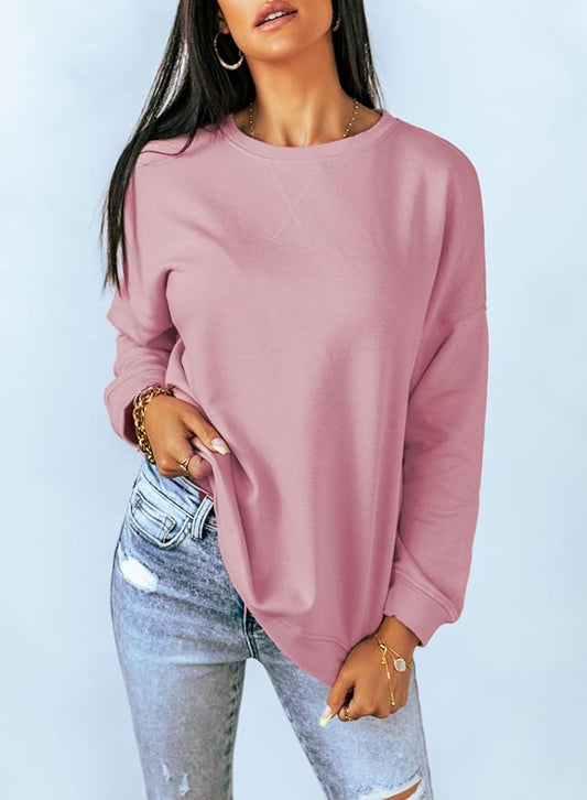 Dokotoo Women's Casual Crew Neck Sweatshirt Loose Soft Long Sleeve Pullover Tops