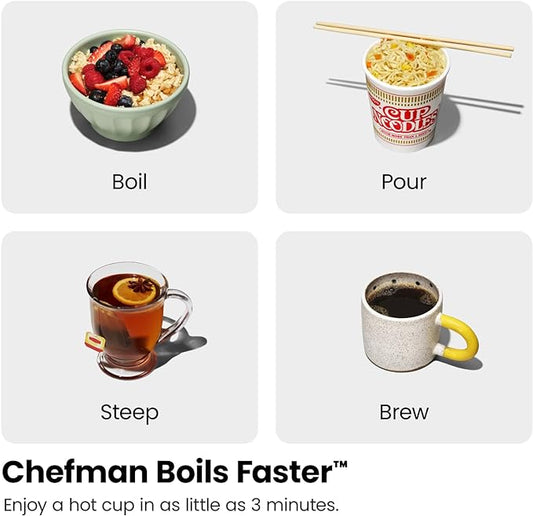 Chefman Electric Kettle with Temperature Control, 5 Presets LED Indicator Lights, Removable Tea Infuser, Glass Tea Kettle & Hot Water Boiler, 360° Swivel Base, BPA Free, Stainless Steel, 1.8 Liters