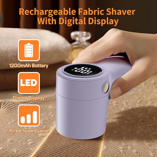 ``𝗥𝗲𝗰𝗵𝗮𝗿𝗴𝗲𝗮𝗯𝗹𝗲 Fabric Shaver, coldSky Lint Remover for Clothes with 3 Blades, Electric Lint Shaver with Digital Display, 3-Speeds Defuzzer for Removing Fuzz and Pill from Sweater Purple