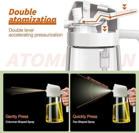 YARRAMATE Oil Sprayer for Cooking, 2 in 1 Olive Oil Dispenser Bottle for Kitchen, 16oz/470ml Premium Glass Oil Bottle, Food-grade Oil Mister for Air Fryer, Salad, Frying, BBQ (Creamy White)