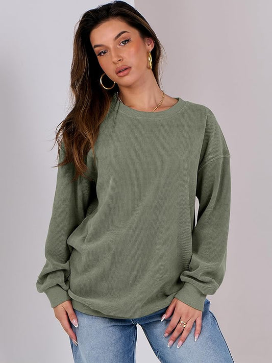 Caracilia Womens Oversized Sweatshirt Sweater Crewneck Long Sleeve Ribbed Corduroy Casual Pullover 2024 Fall Fashion Clothes