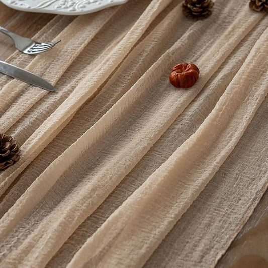 Keketo Beige Cheesecloth Table Runner Rustic Boho Gauze 120 Inch 10 FT Cheese Cloth for Wedding Baby Shower Bridal Shower Birthday Engagement Party Long Sheer Fall Home Decorations