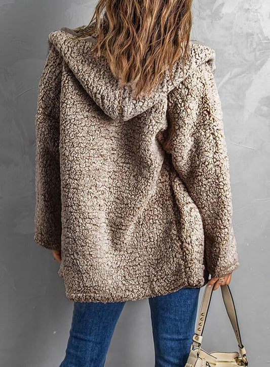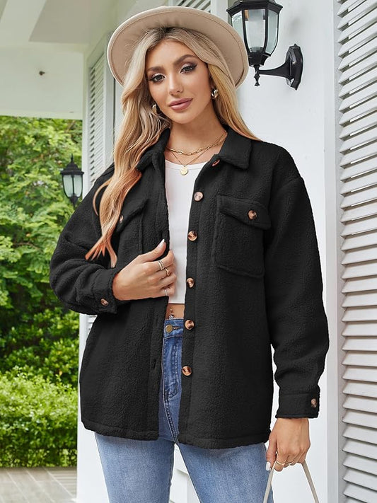 ZAFUL Womens Winter Sherpa Fleece Jacket Button Down Long Sleeve Warm Fuzzy Outwear Coat with Pockets