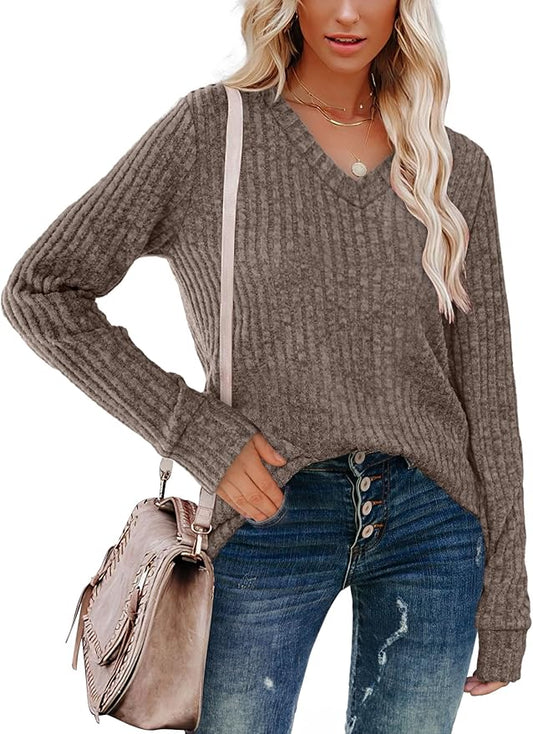 SAMPEEL V Neck Long Sleeve Shirts for Women Casual Fall Tops Lightweight Tunic Sweaters Fashion Clothes 2024