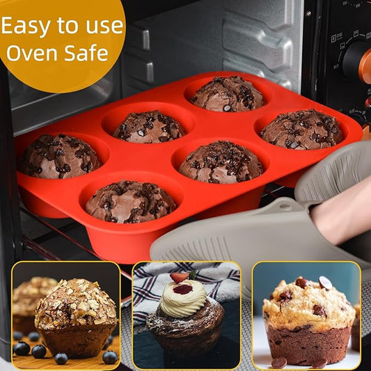 CAKETIME Jumbo Muffin Pan, 3.5 Inch Large Muffin Pan 6 Cup Silicone Jumbo Muffin Tin for Baking Food Grade Silicone Non Stick
